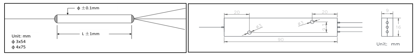| Dimensions(mm) | φ3x54 | φ4.0×75 | 90×16x9 |