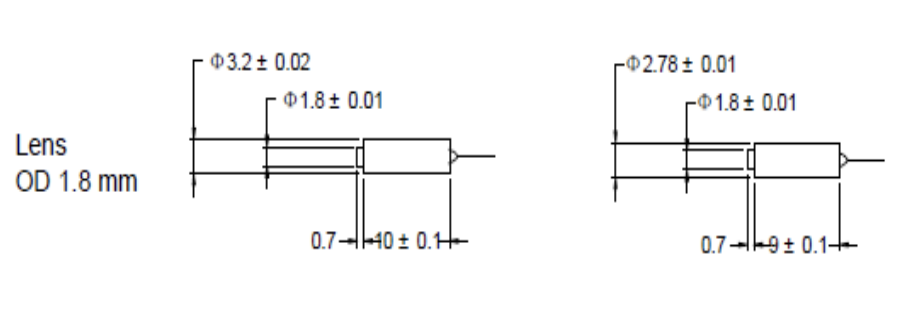 Dimensions 1.8(OD) Lens mm 3.2x10 Metal Holder or 2.78x9.0 Glass Tube