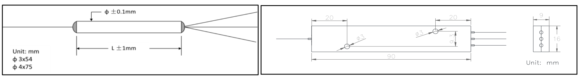Dimensions(mm) φ3x54 φ4.0×75 90×16×9