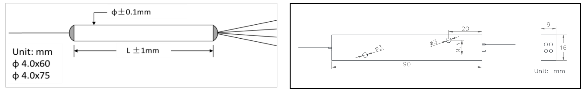 | Dimensions(mm) | 250μm Bare Fiber | 900μm Loose Tube | 900μm or 2/3mm cable | |