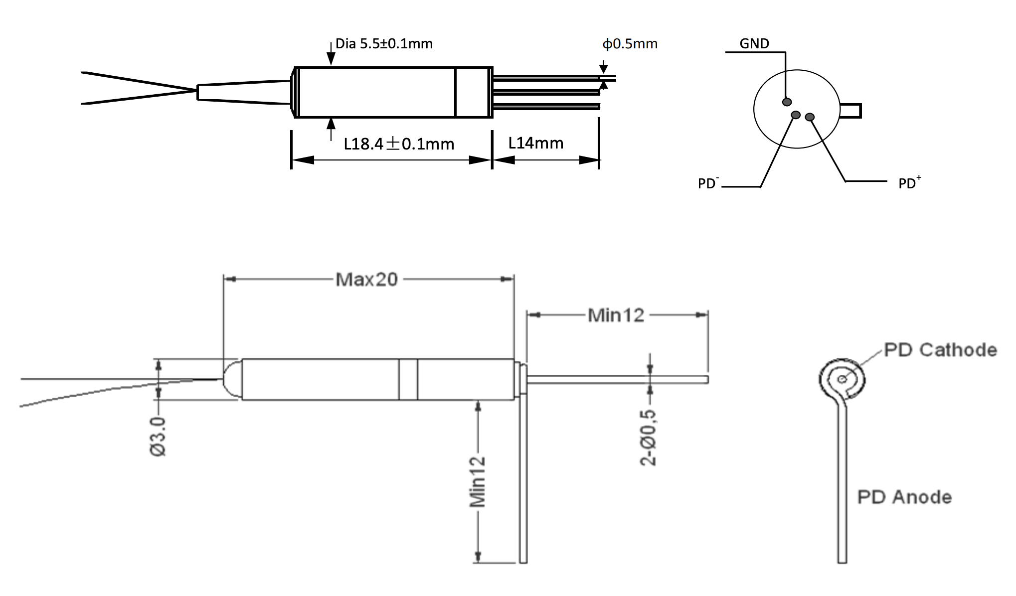| Dimensions | mm | Ф5.5XL18.4; Ф3.0XL20 | ||